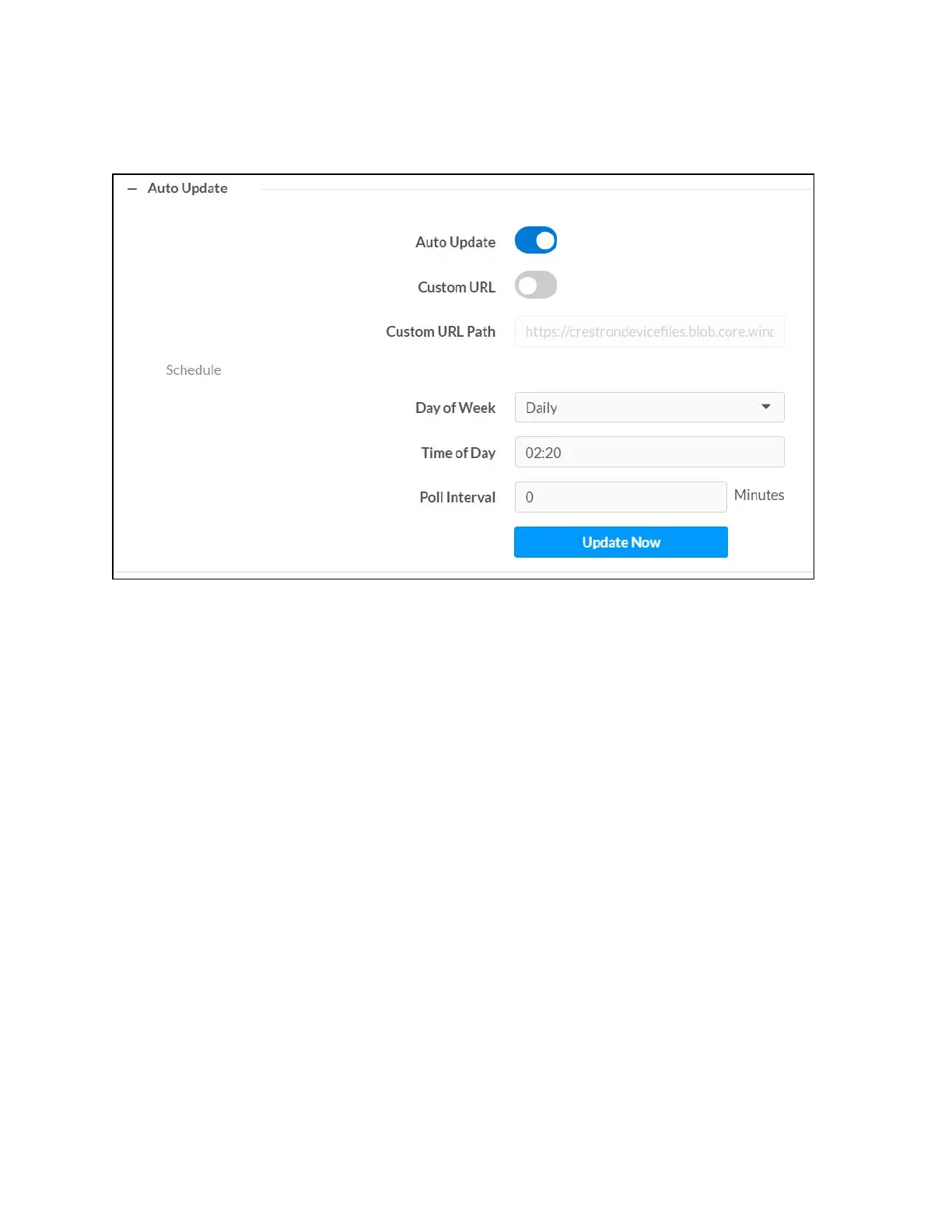 Clicking Update Now causes the firmware to be updated at the current time; however, the