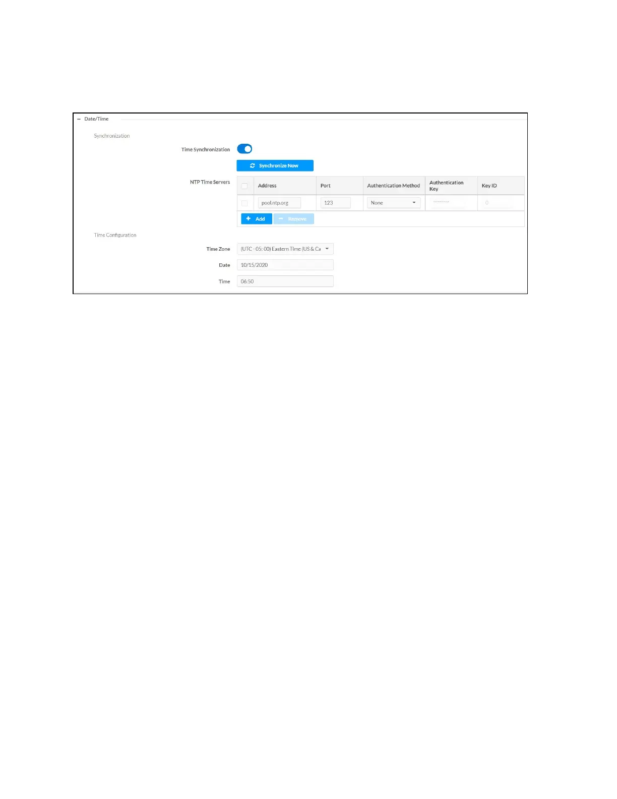 3. Click Synchronize Now to perform time synchronization between the device's internal