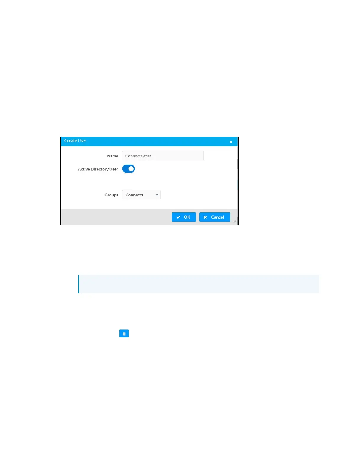 Click the trashcan button ( ) in the Actions column to delete the user. Click Yes when