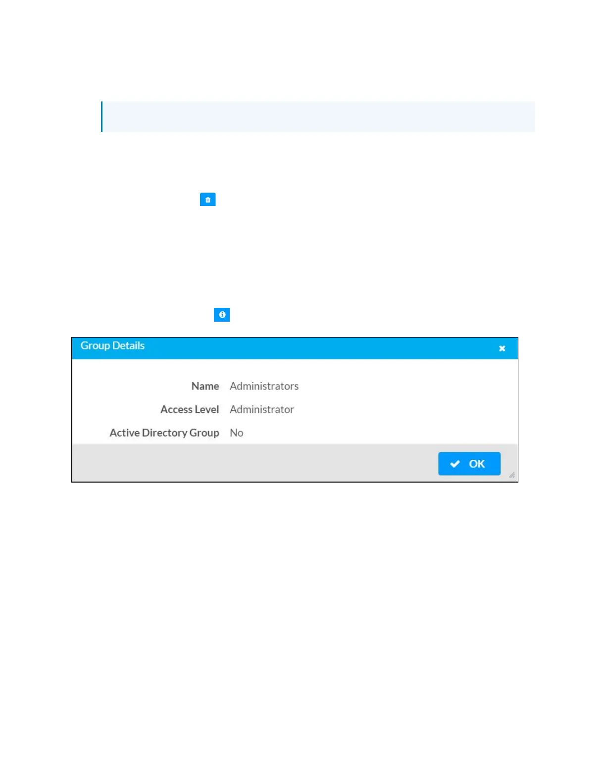 Click the trashcan button ( ) in the Actions column to delete a group. Click Yes when prompted