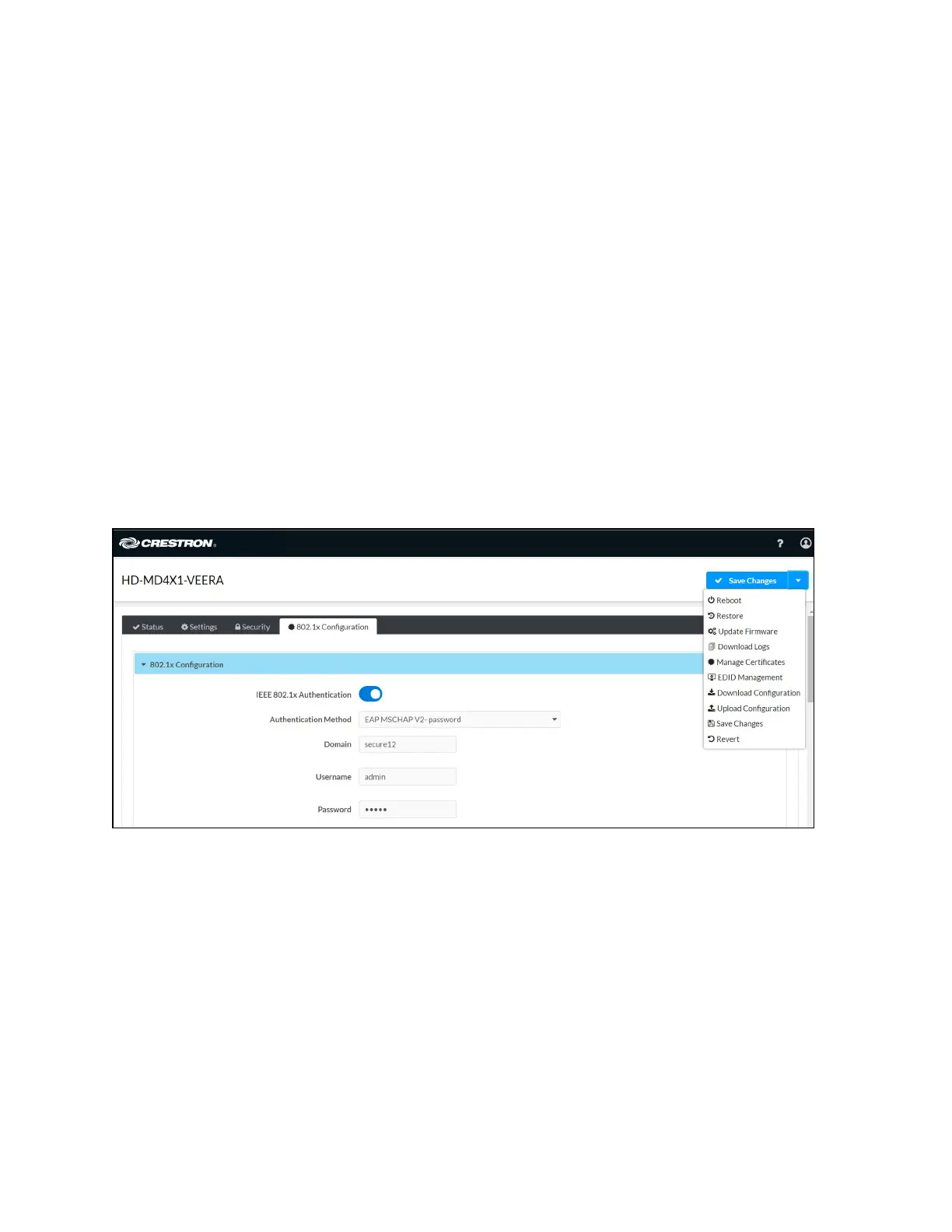 Crestron HD-MD4X1-4KZ-E - Actions Menu