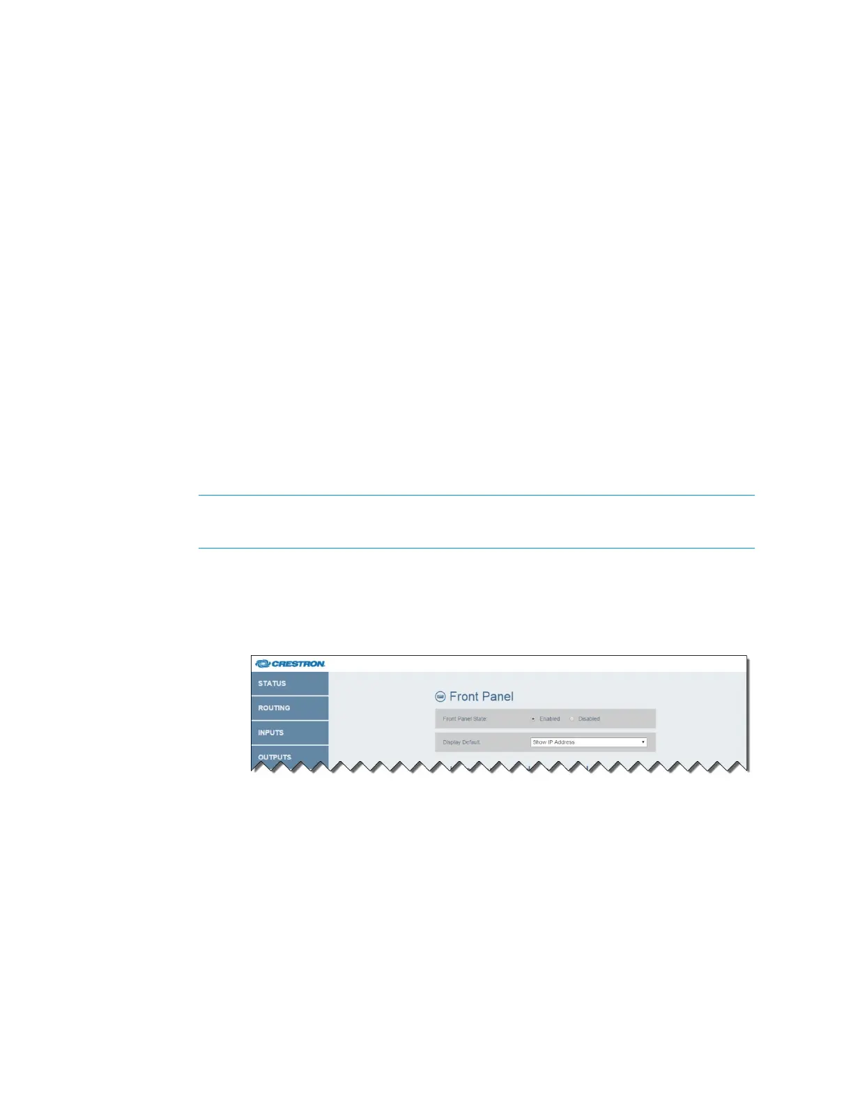 radio button. When the front panel is disabled, the