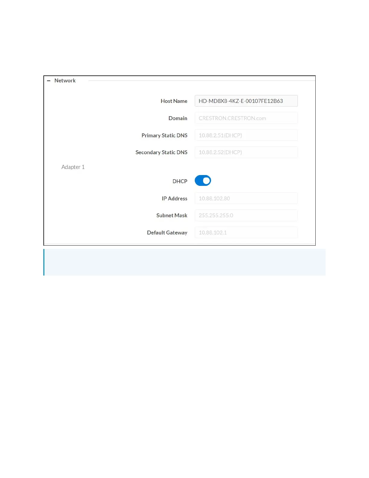 Disabled:When DHCP is disabled, manually enter information in the following fields: