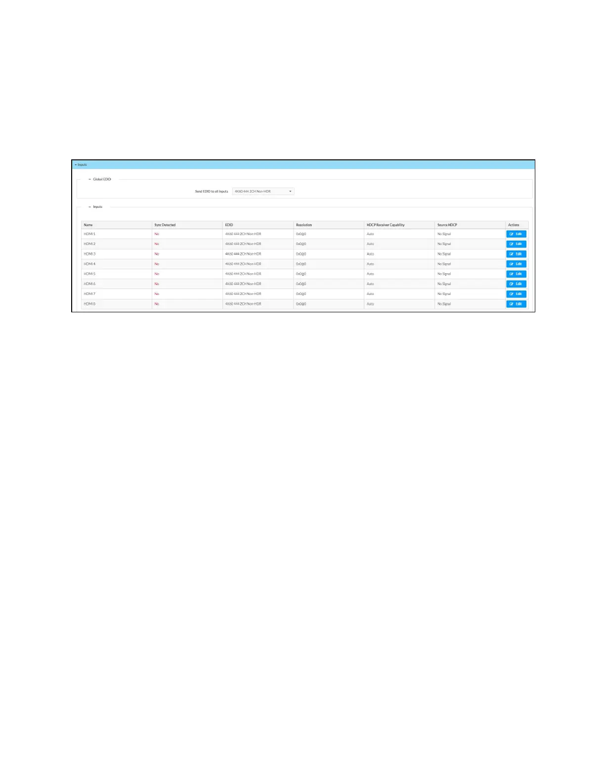 once (Global EDID), and enabling or disabling HDCP (High-bandwidth Digital Content