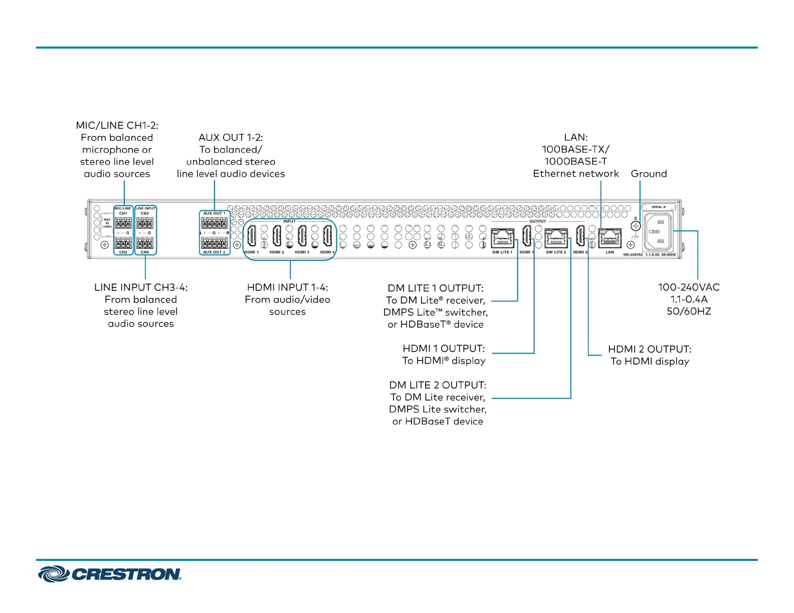Crestron HD-PS402 - Rear Panel Connections