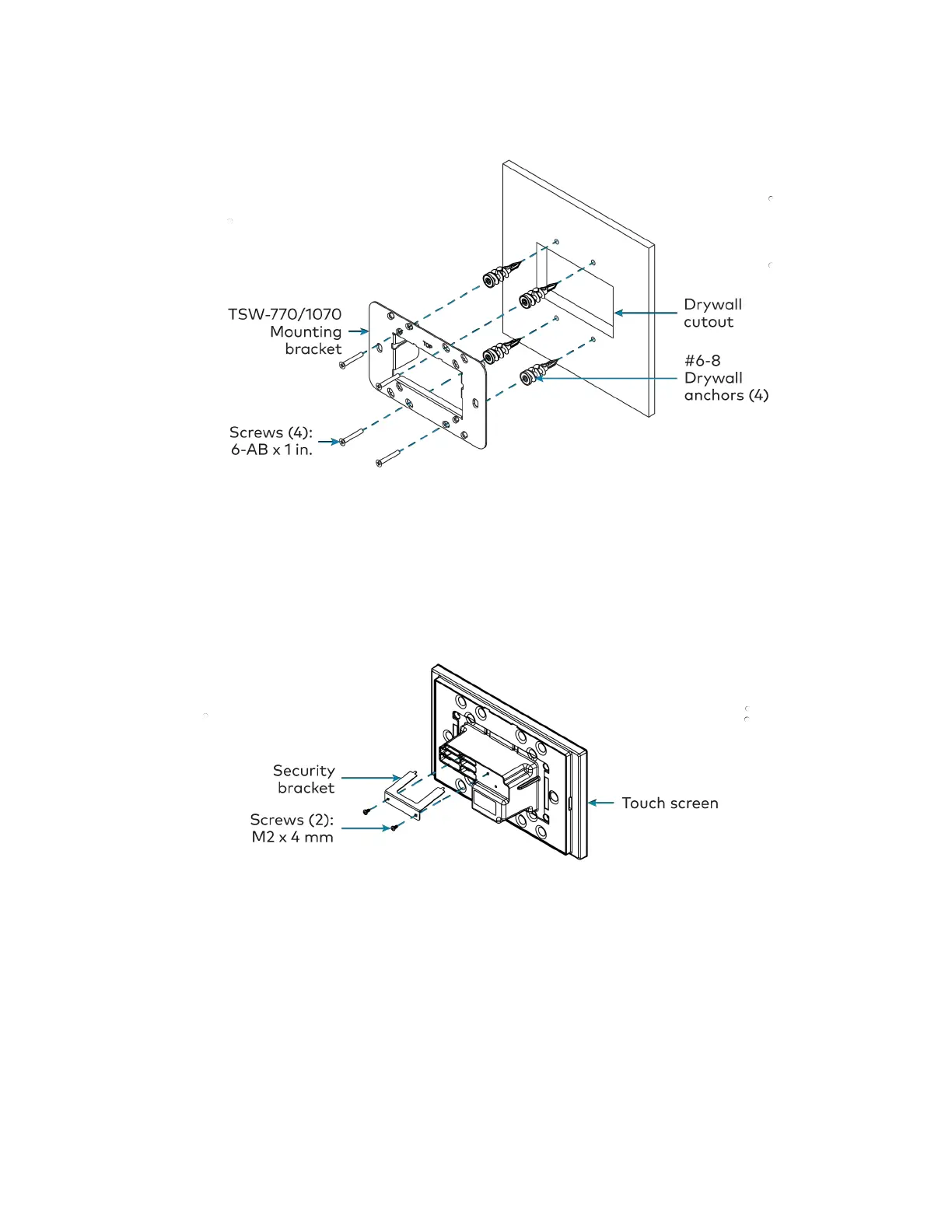 5. Attach the mounting bracket to the anchors using the four 6-ABx 1in. screws as shown in