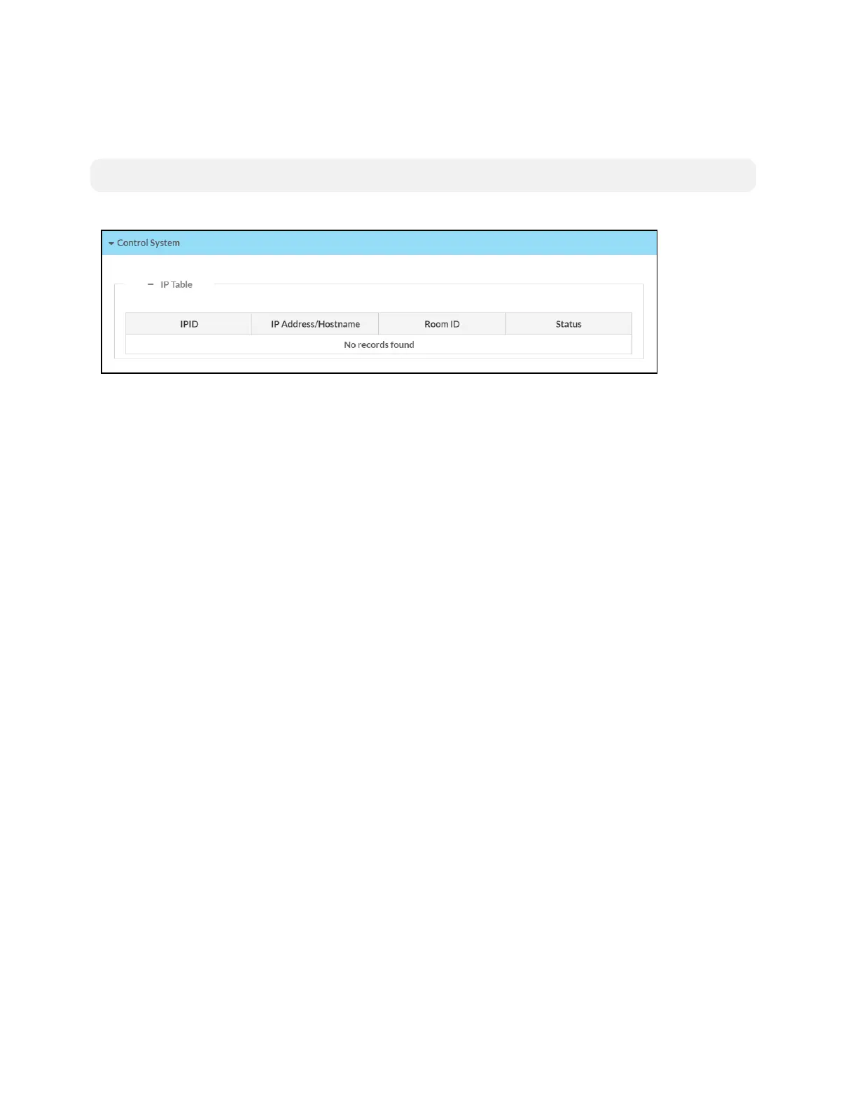 IP Table: Displays the IP table information for the control system connection: