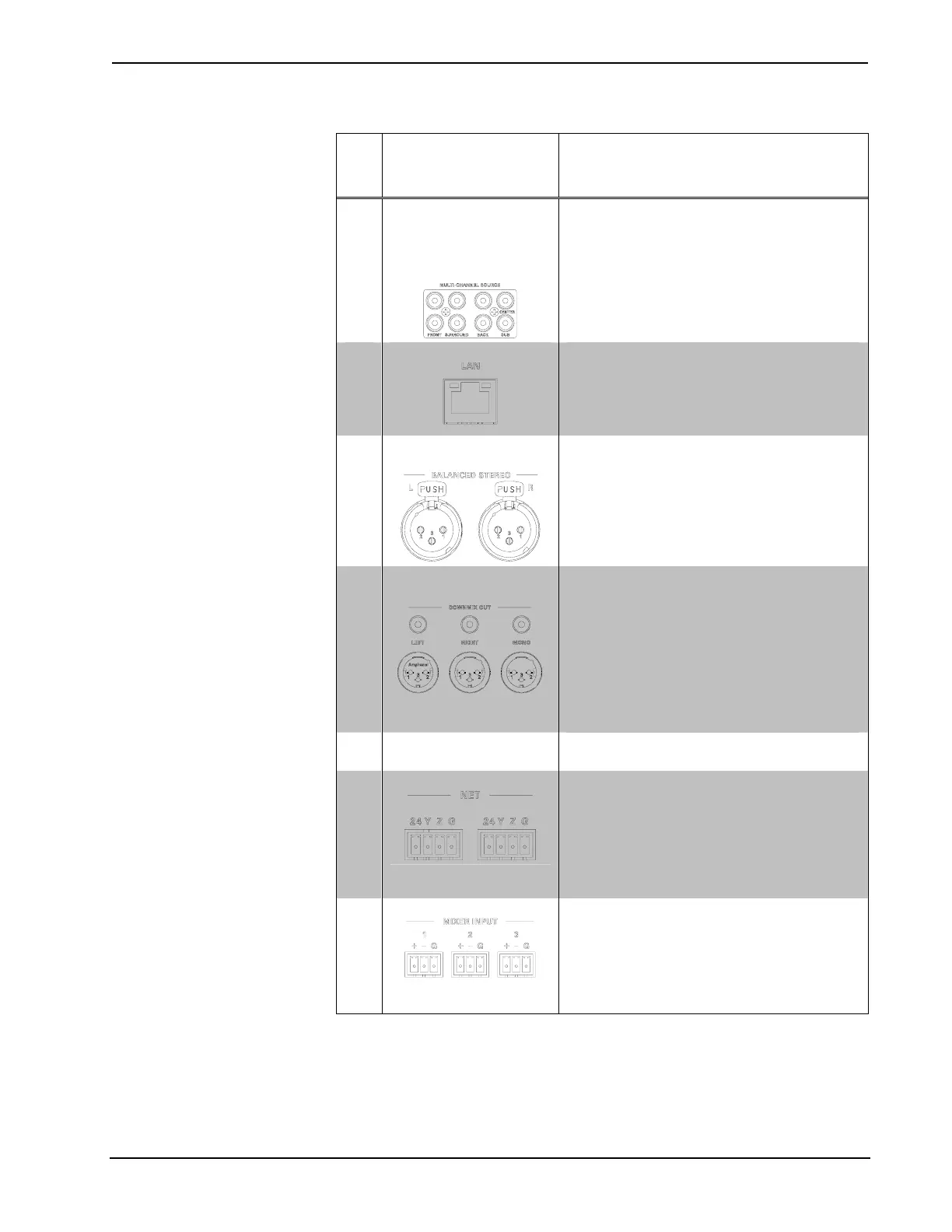(3) 3-pin XLR male; Balanced line-level stereo