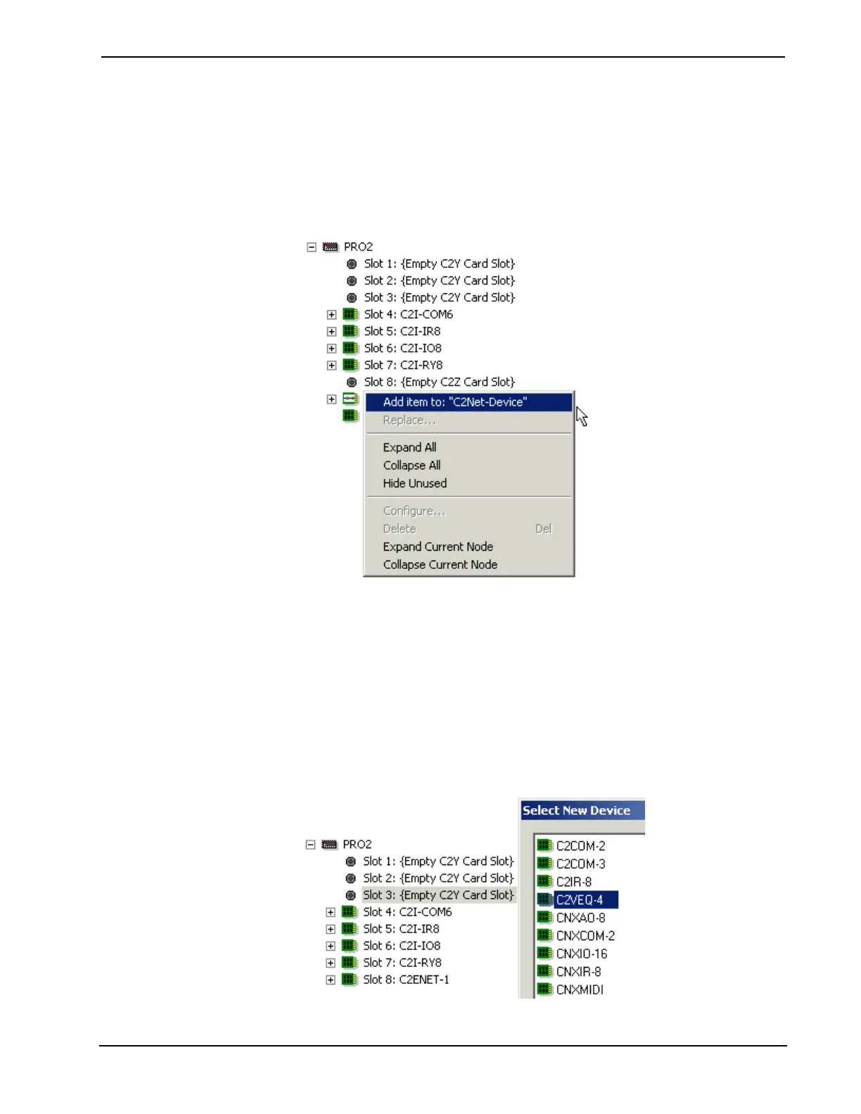 double-clicking the empty card slot in the control system tree. This will display a list
