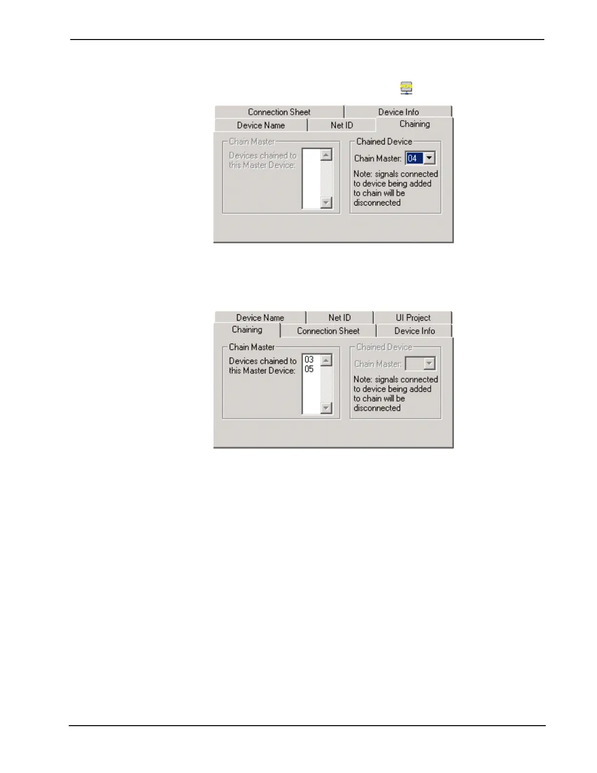 displayed in the top System View as a Chained