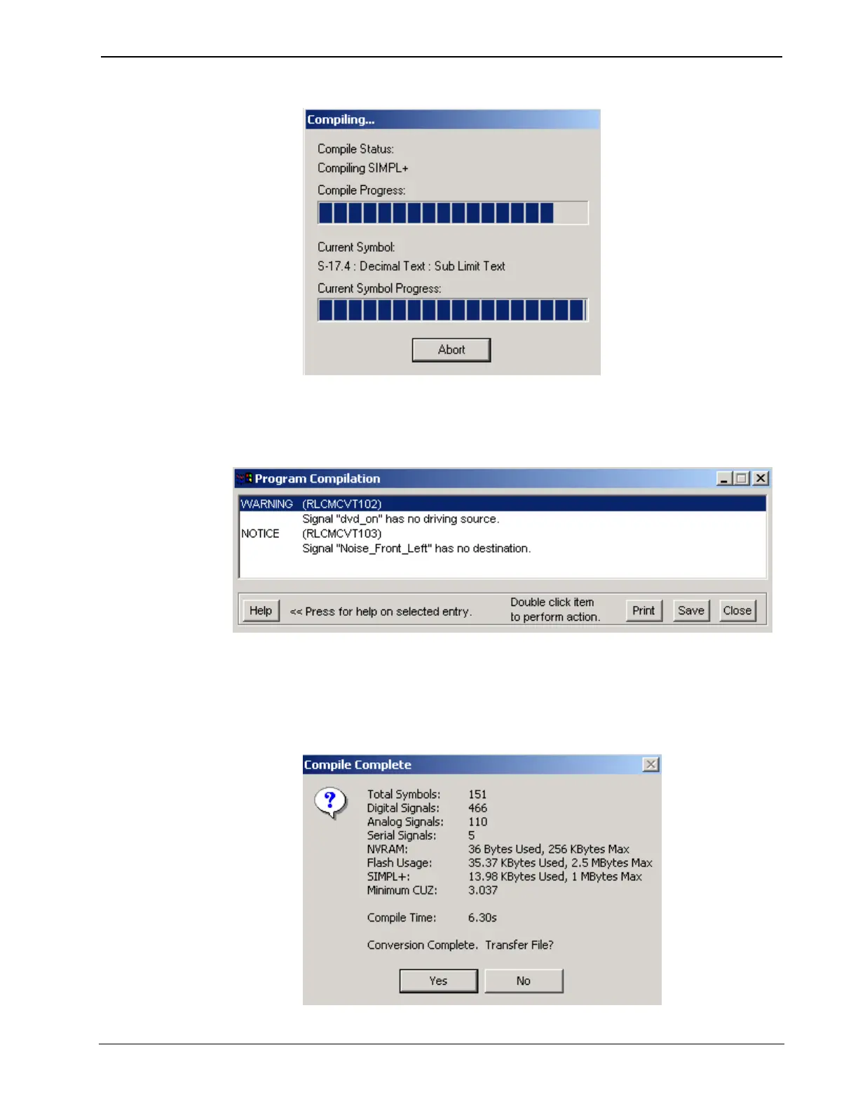 For further information about compiler errors, refer to the SIMPL Windows help file.