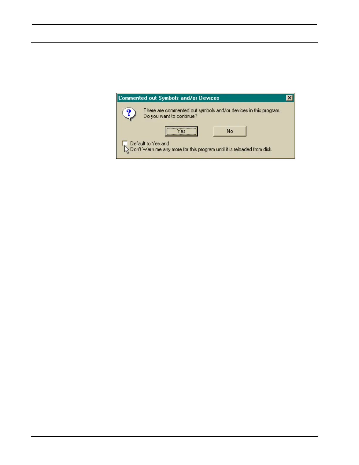 "Commented out Symbols and/or Devices" dialog box appears, shown after this