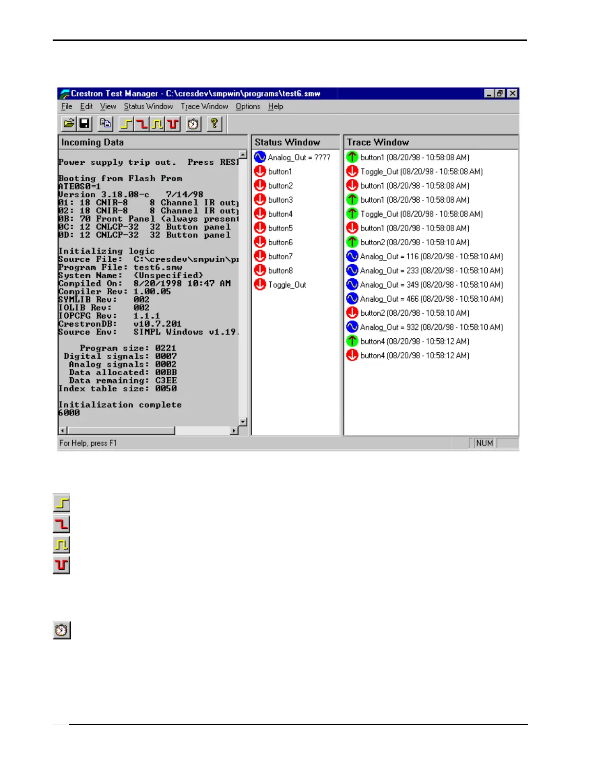 The Time Stamp button inserts a time stamp in the Trace Window.