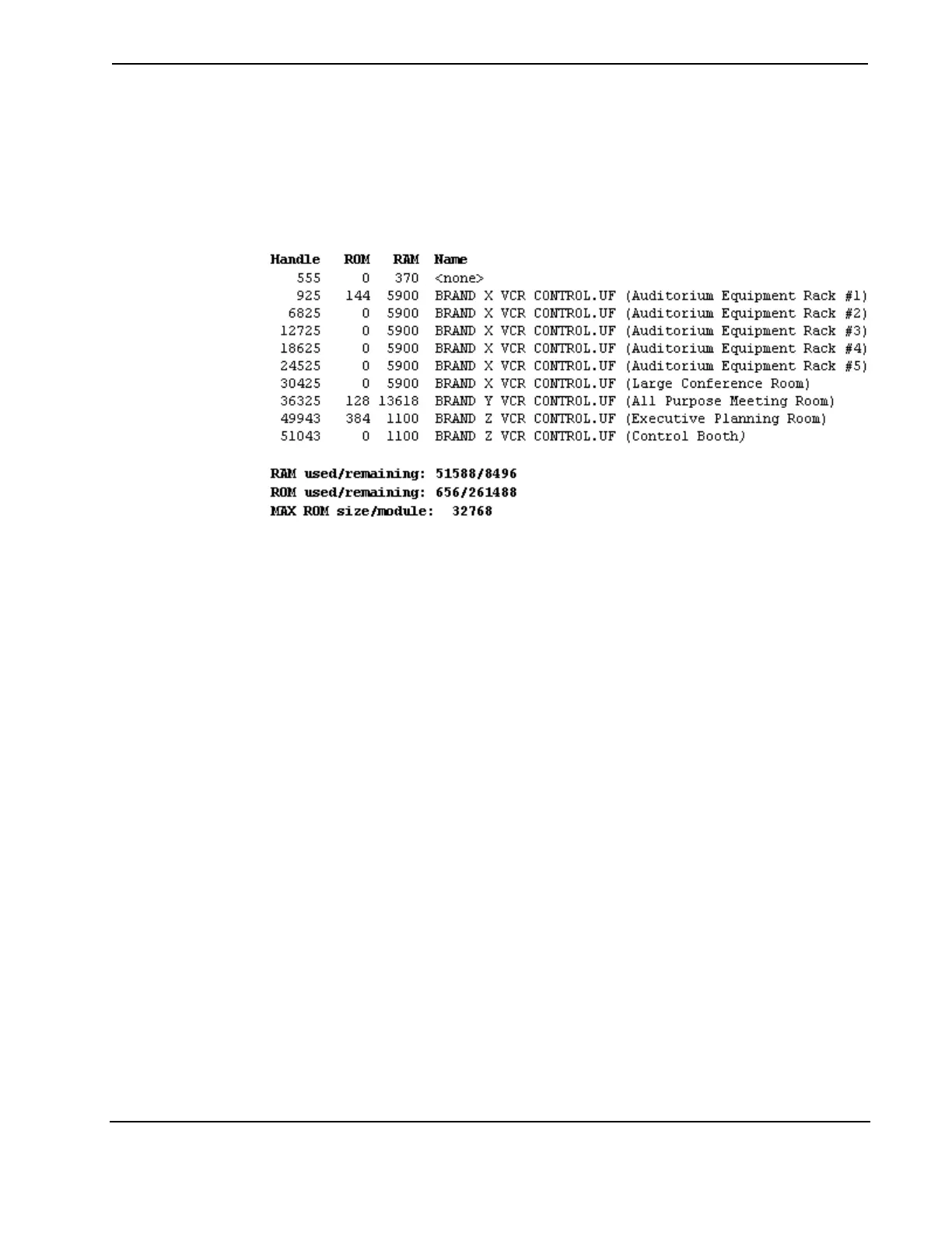 (as shown in the RAM column), but no additional ROM. In the above example,