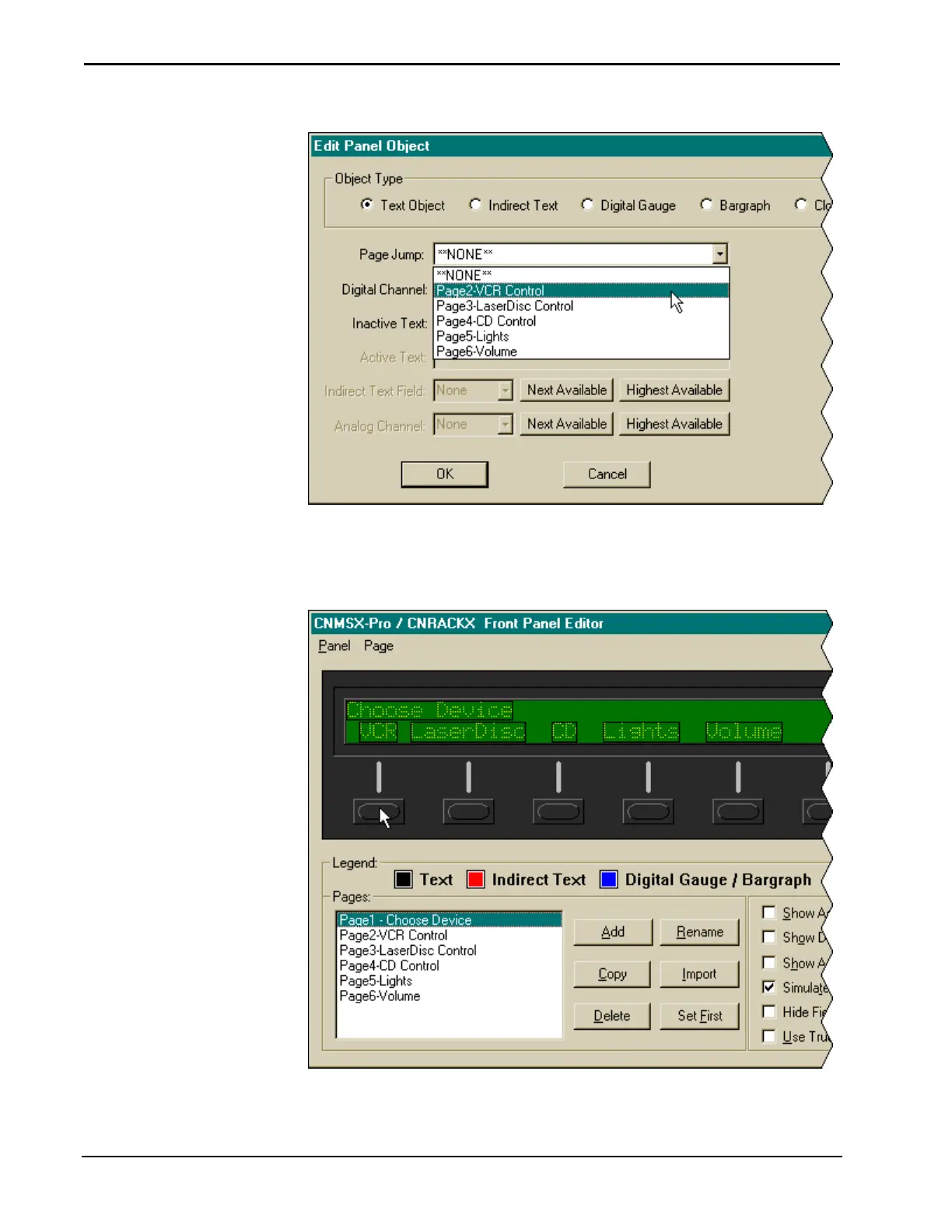 CNX front panel. The function buttons will be enabled only if a page jump is