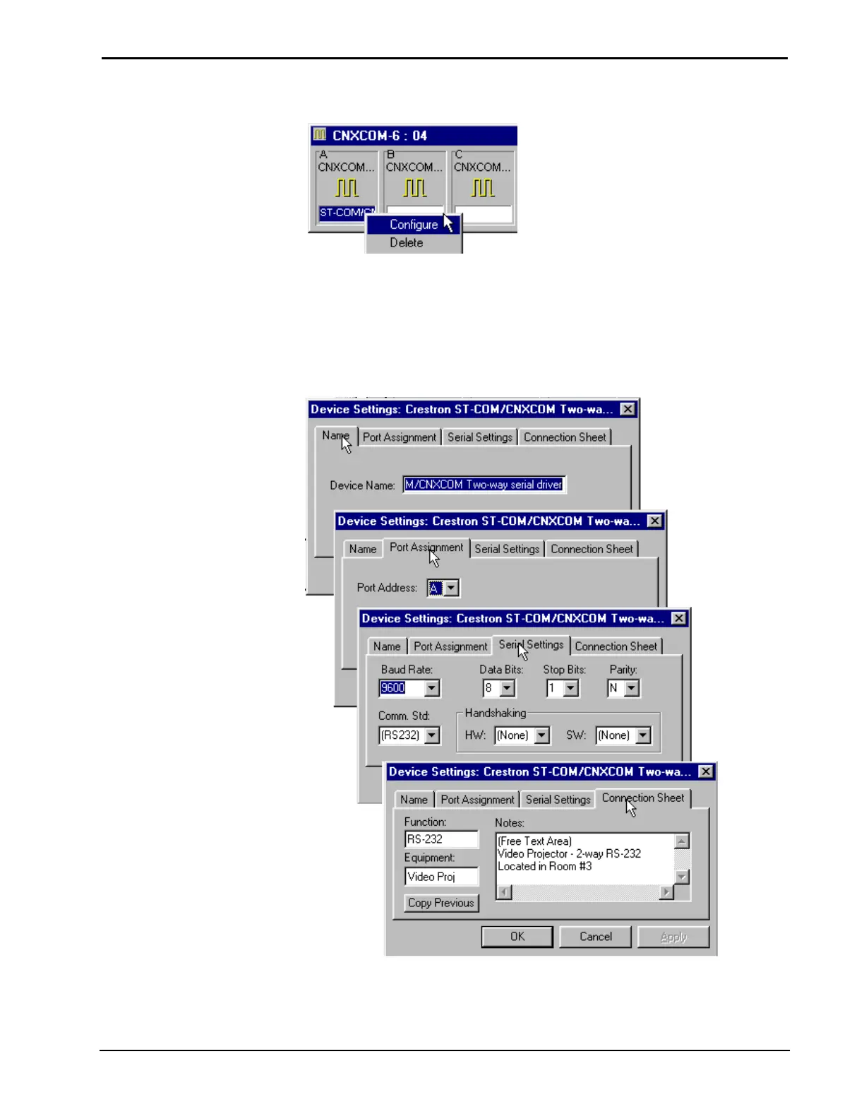 each device, as well as record notes for the connection sheet report. Serial Devices