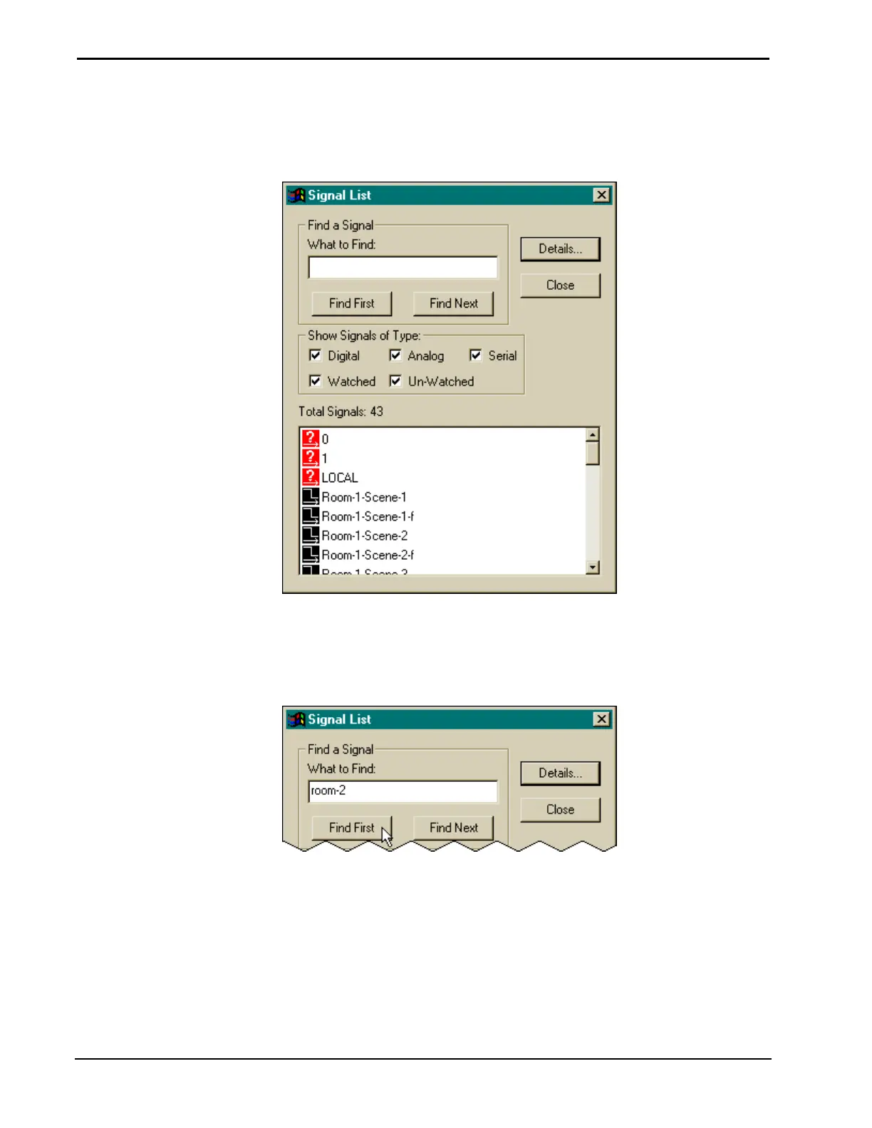 the "Signal List" dialog box, shown below. This dialog box allows the user to search