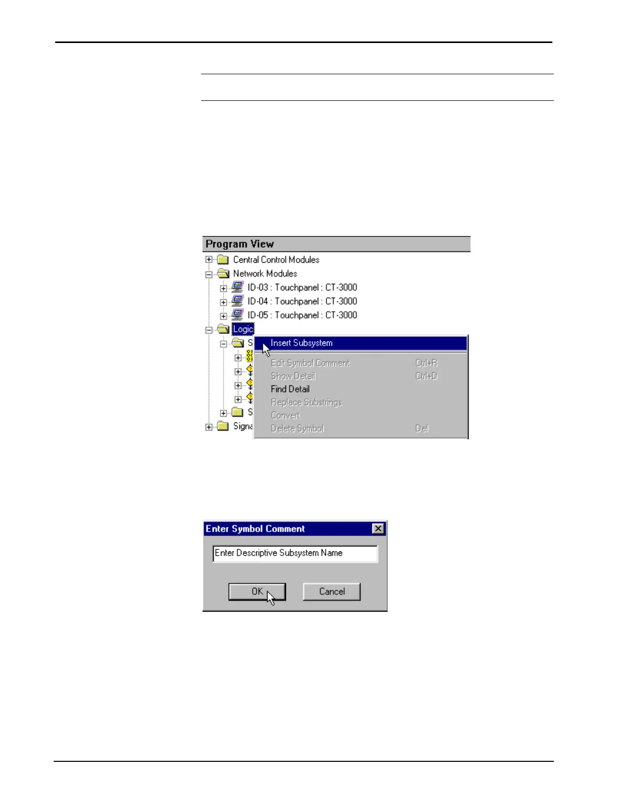 To create a subsystem, select the Logic folder in Program View and choose Insert