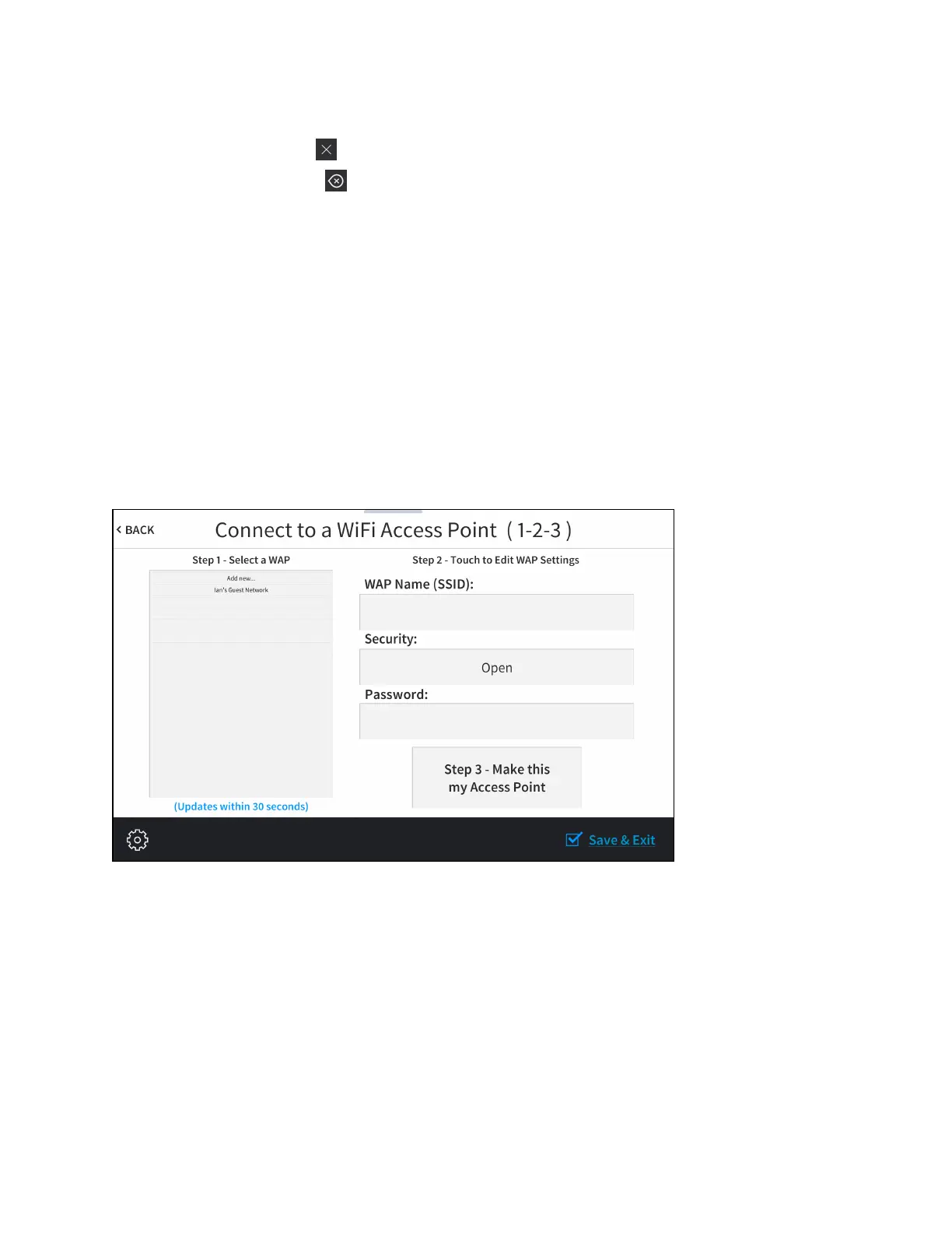Connect to a Wi-Fi Access Point (1-2-3)Screen
