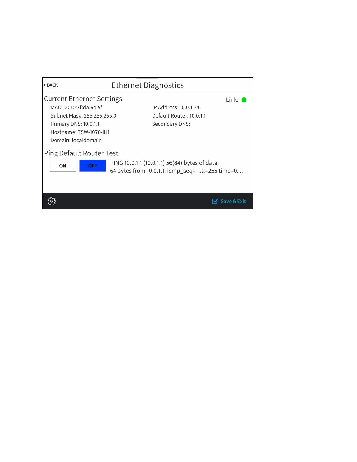 Ethernet Diagnostics Screen