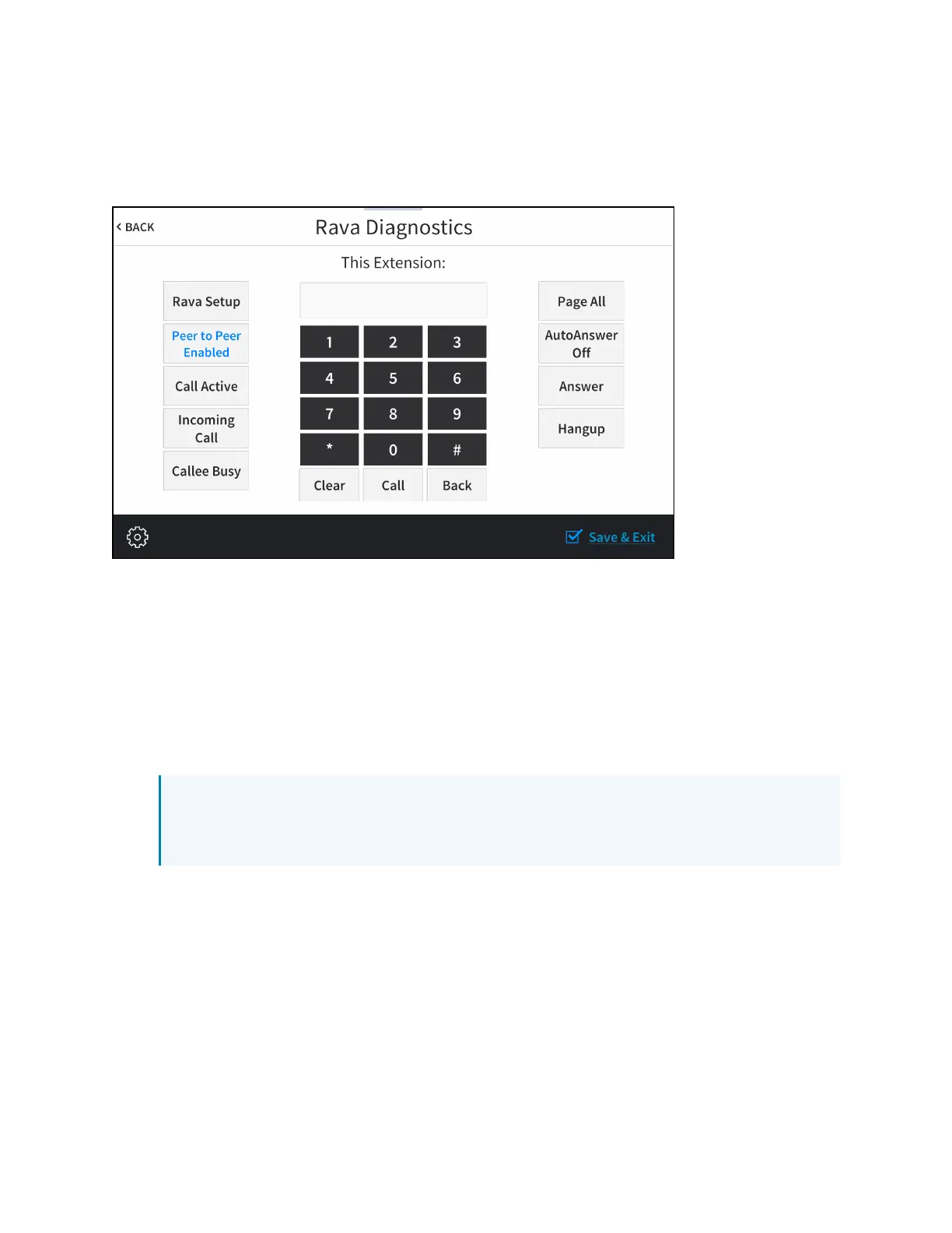 Use the Rava Diagnostics screen to test using the Rava® SIP Intercom with the touch screen.