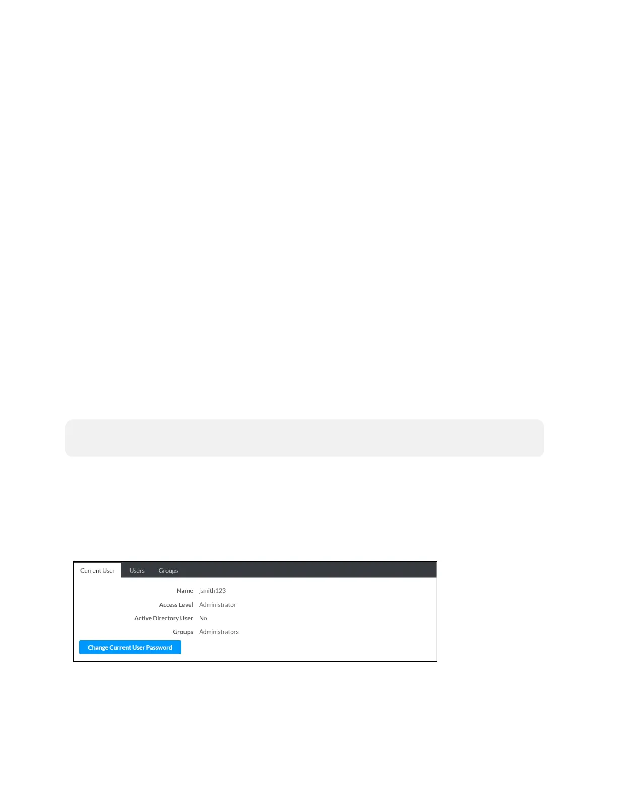 Authentication Management - Current User Tab