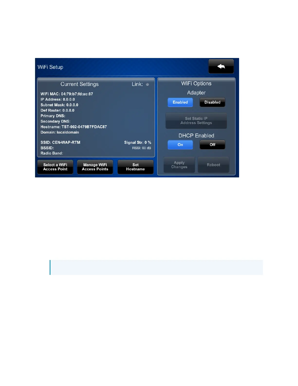 Tap Apply Changes to apply any new Wi-Fi settings to the touch screen and to stay in