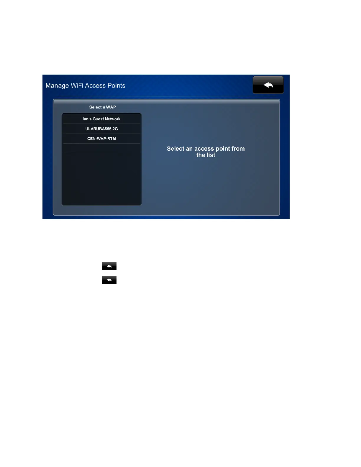 On the Wi-Fi Setup screen, tap Manage Wi-Fi Access Points. The Manage Wi-Fi Access Points