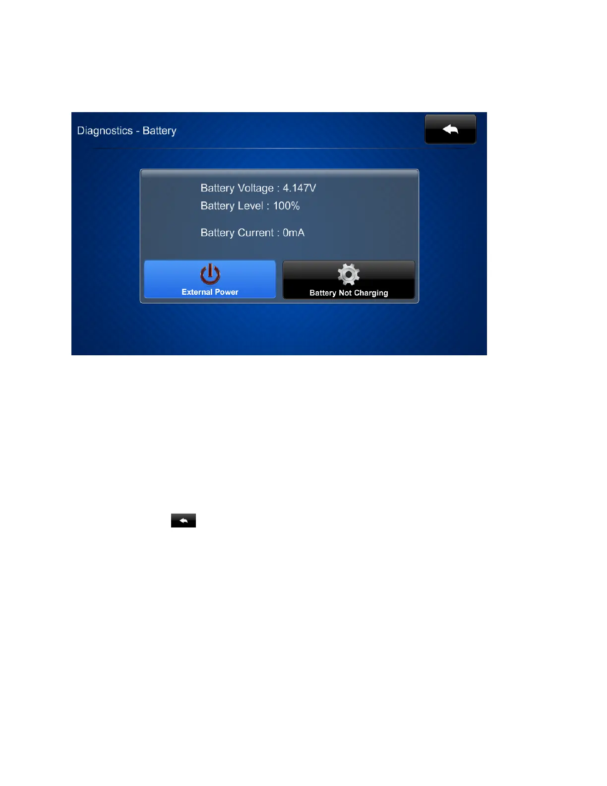 Tap Battery Diagnostics on the Diagnostics screen to display the Diagnostics - Battery screen.