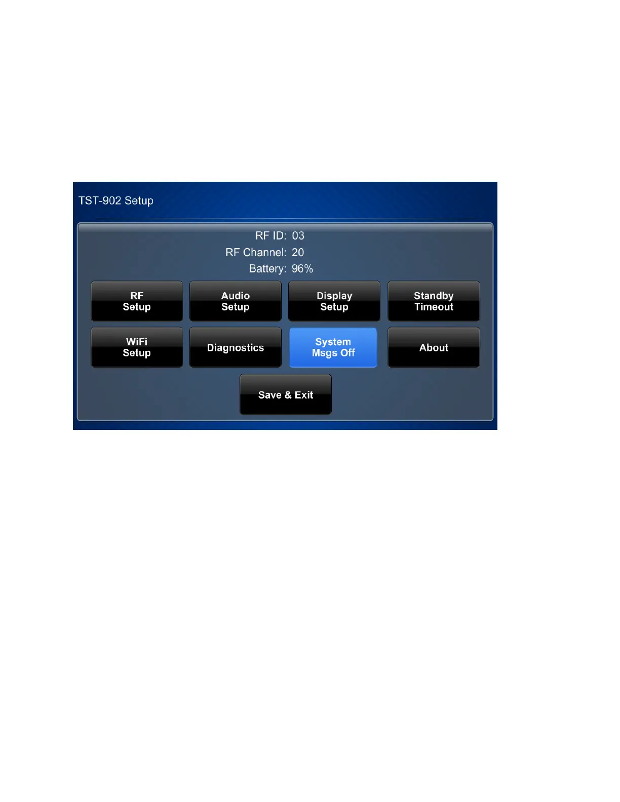 The TST-902 may be monitored and configured using its local setup screens. The setup screens