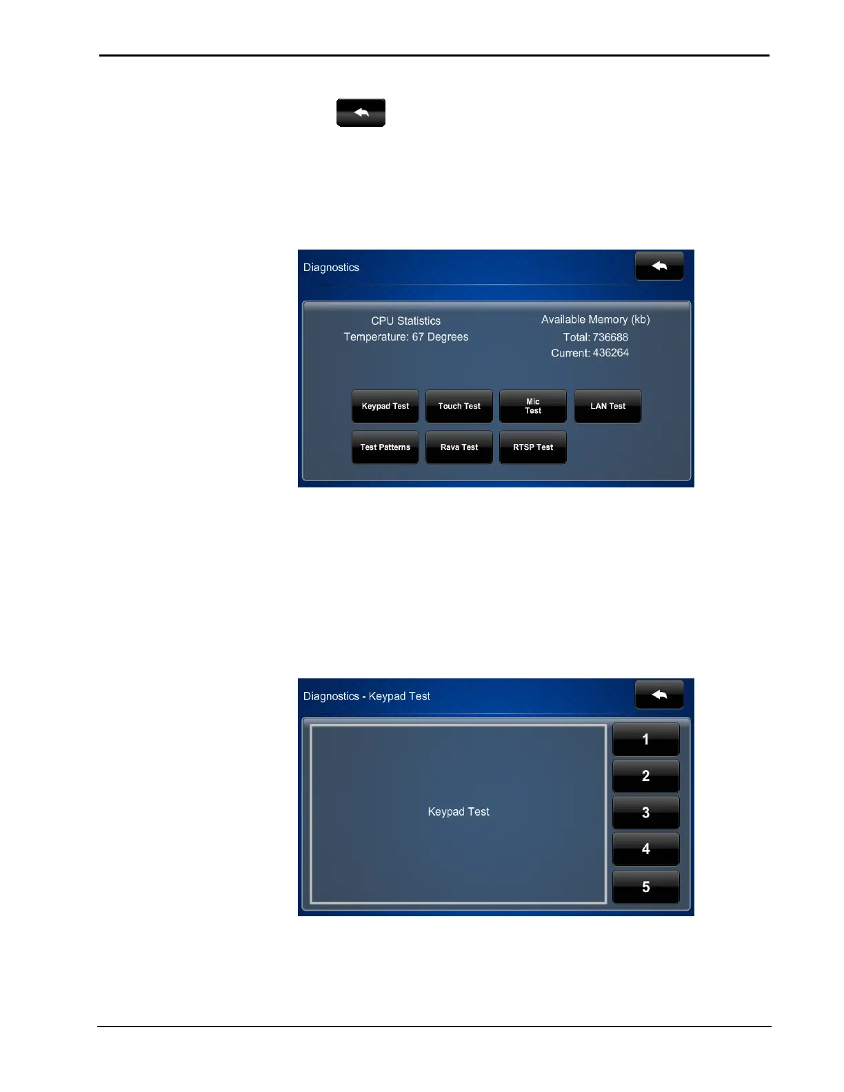 On the “Diagnostics” menu, touch Keypad Test to display the “Diagnostics –