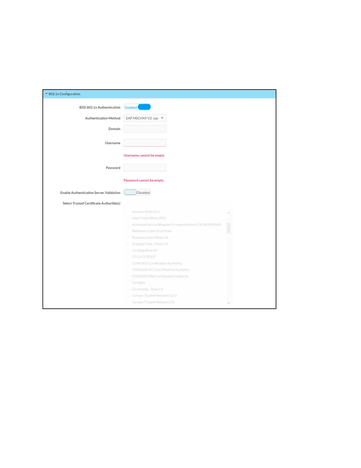 l Domain: If EAP MSCHAP V2- password is selected for Authentication Method, enter a