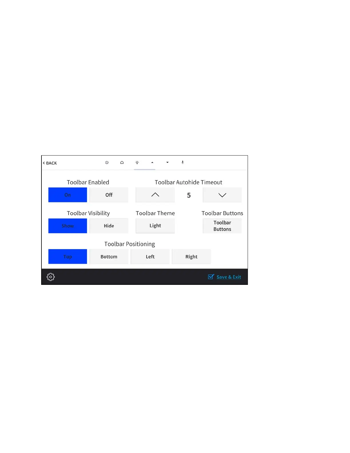The virtual toolbar is used to perform basic device functions if it has been enabled. By default,