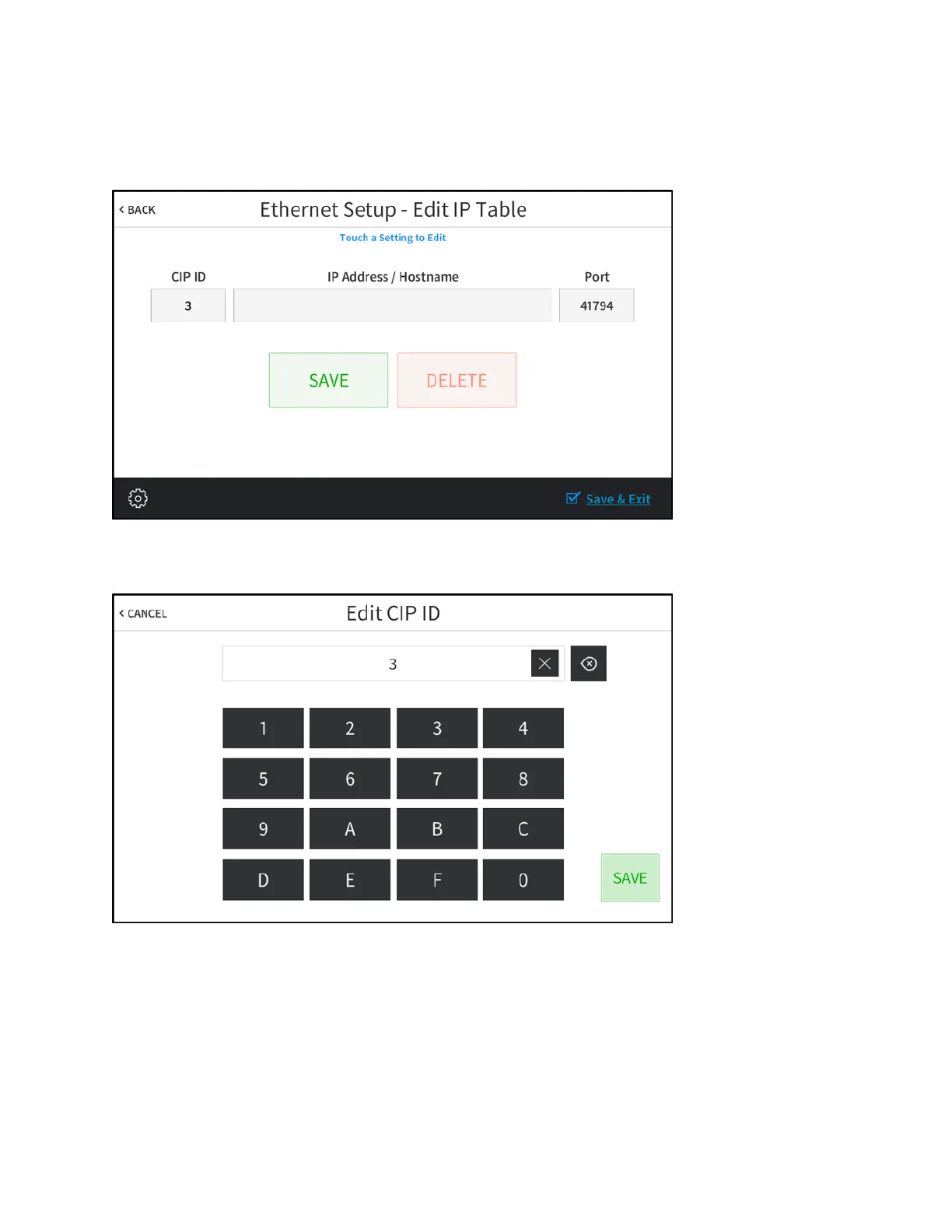 Tap the CIP ID text field to display the on-screen hex keypad.