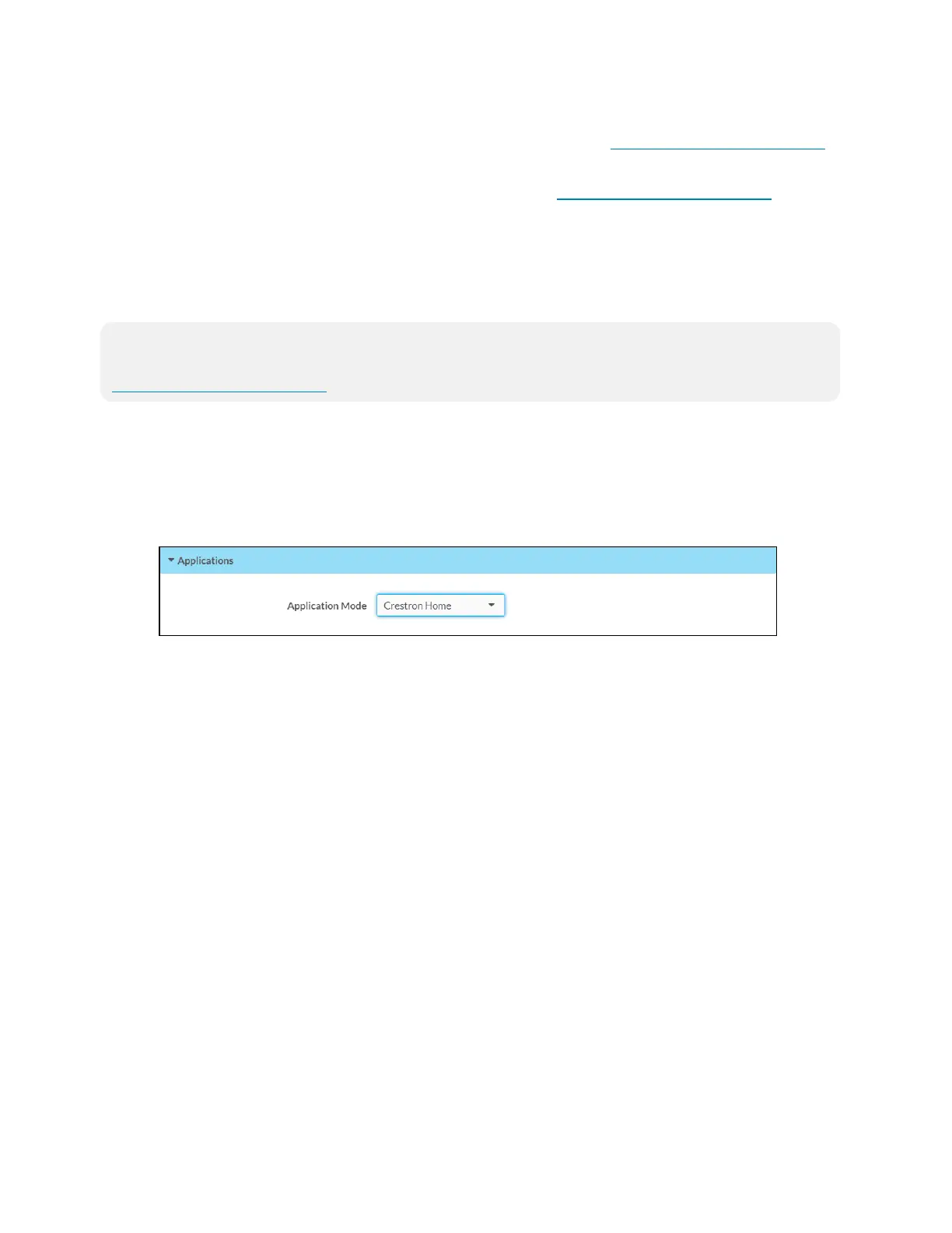 3. Select Crestron Home from the Application Mode drop-down menu.