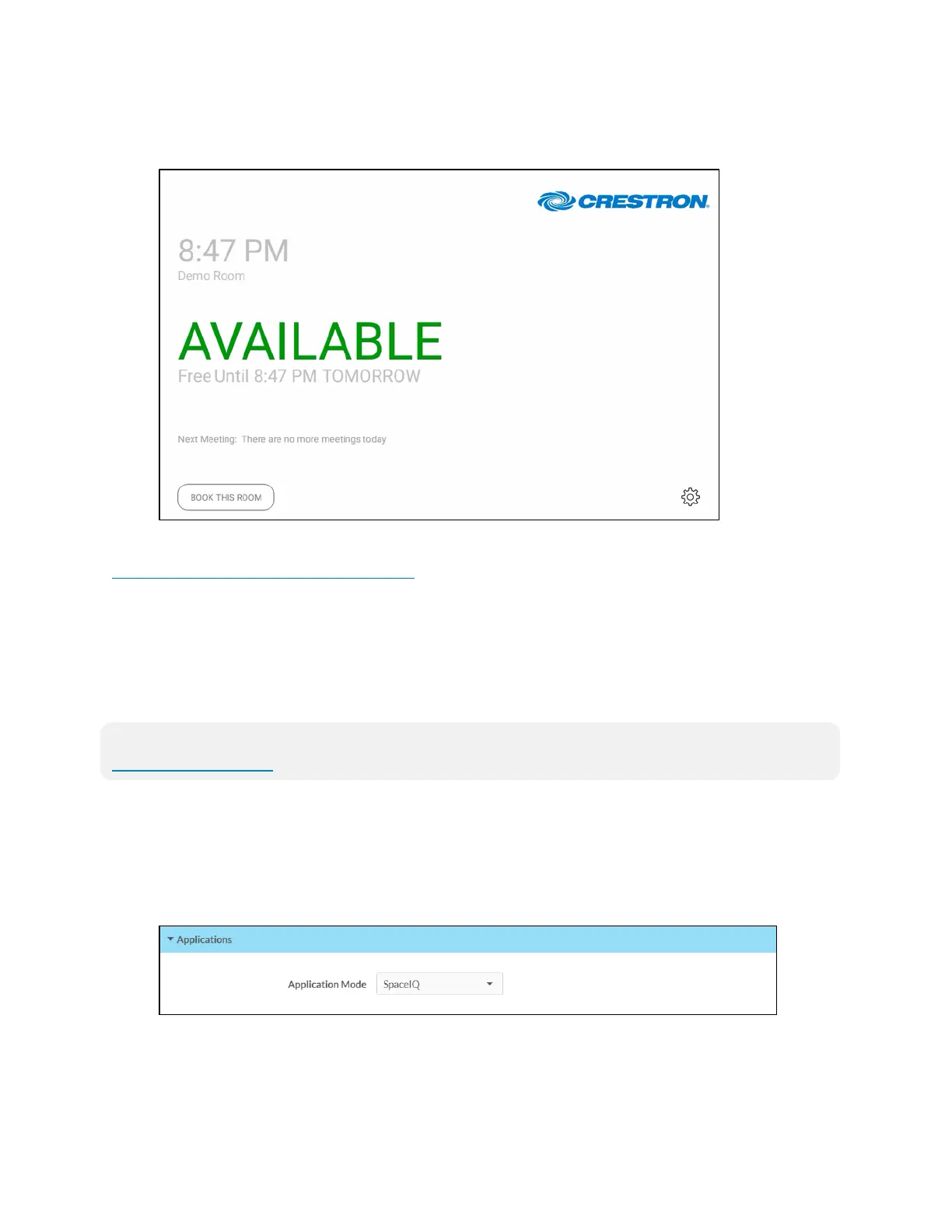 To set up the SpaceIQ scheduling application on the touch screen: