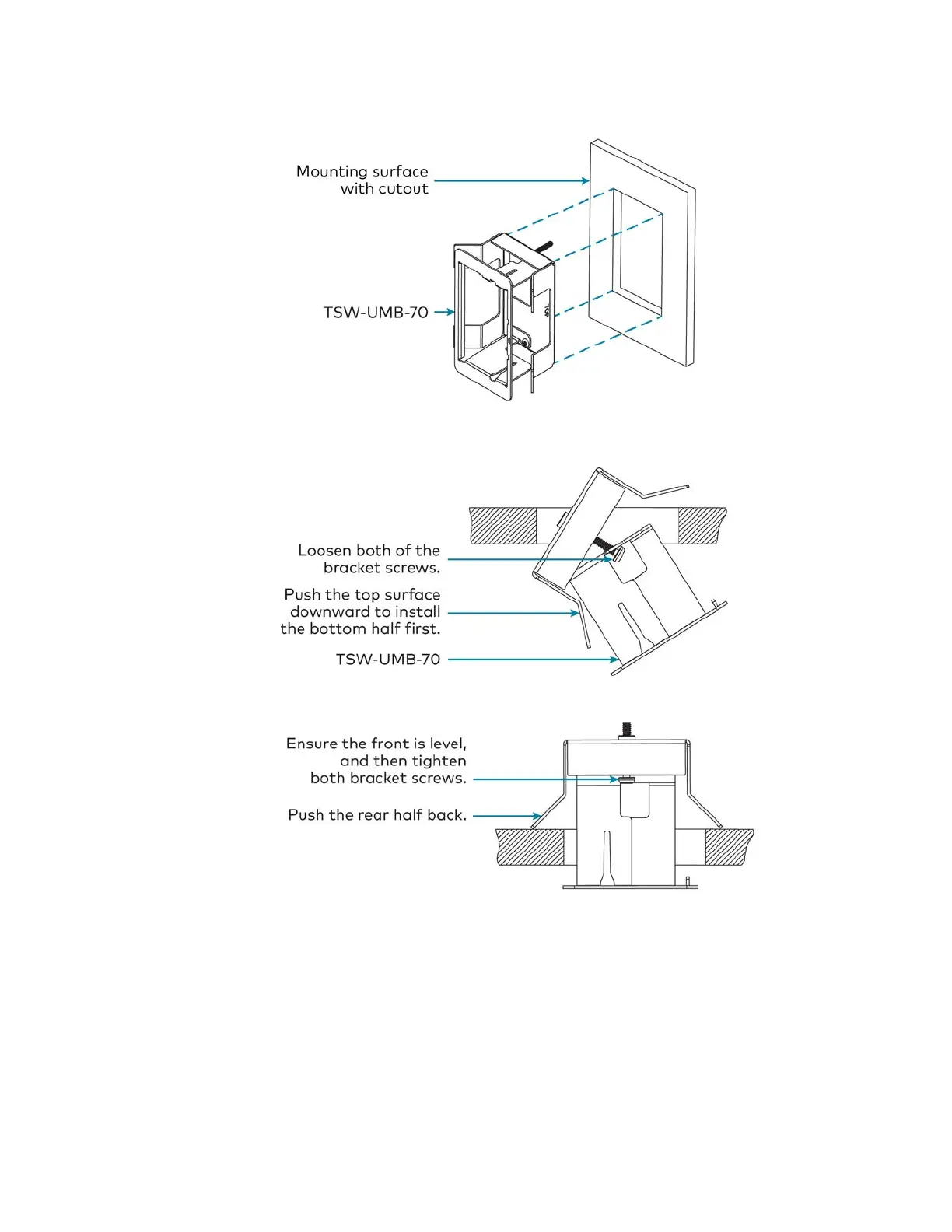 4. Install the TSW-UMB-70, left side first, into the opening.