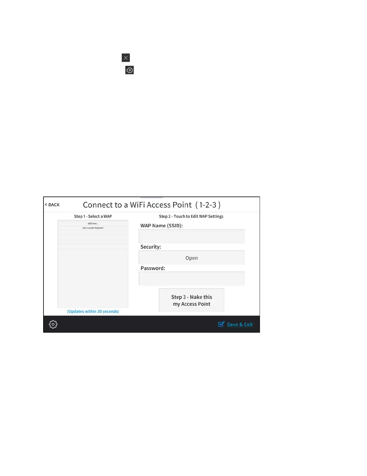 Connect to a Wi-Fi Access Point (1-2-3)Screen