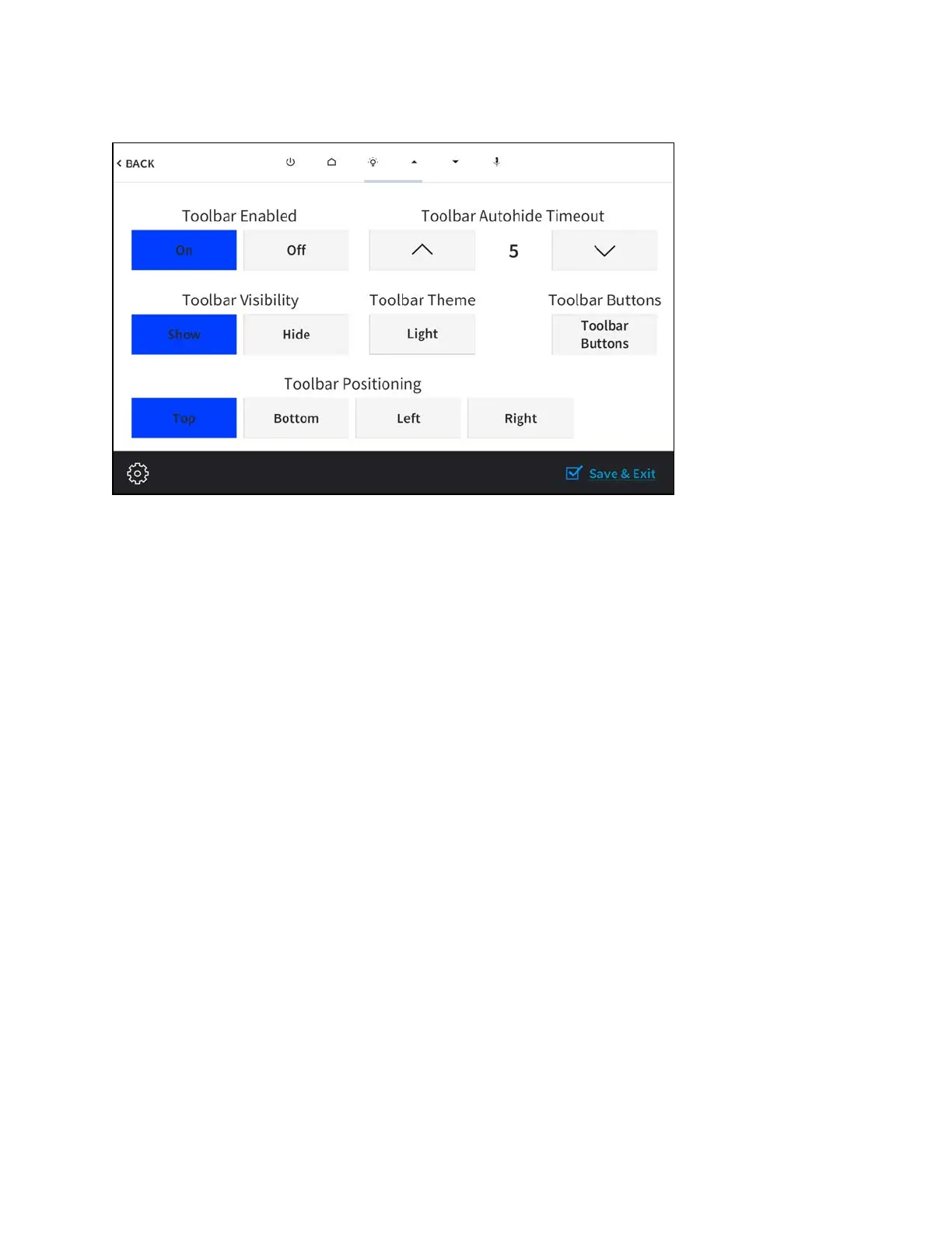 Tap Top, Bottom, Left, or Right under Toolbar Positioning to place the toolbar on the