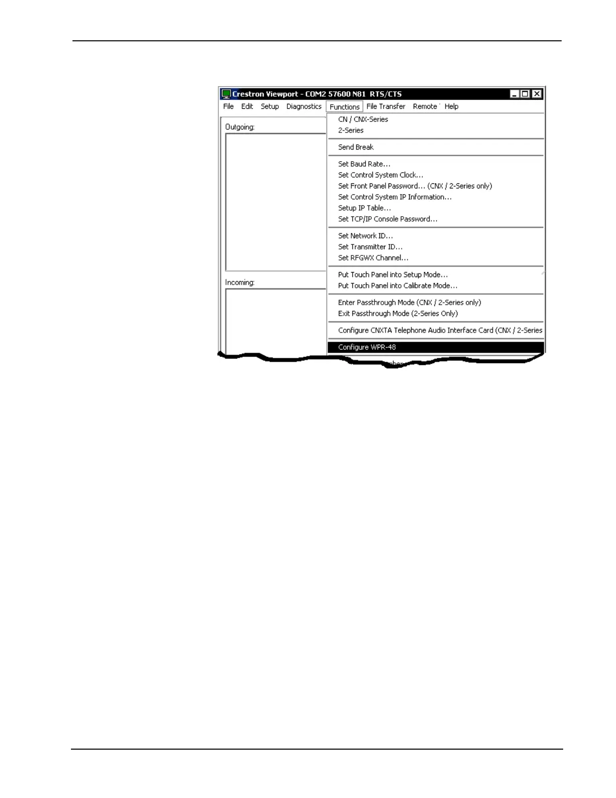 3. The Viewport first displays a “WPR-48 COM Port” window that lets you