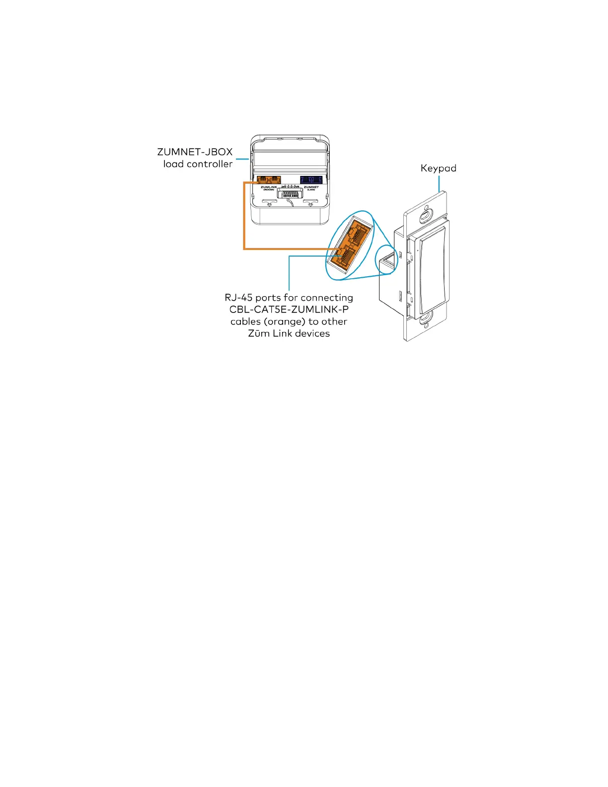 Use orange CBL-CAT5E-ZUMLINK-P cables (sold separately) to wire in-room Zūm wired devices,