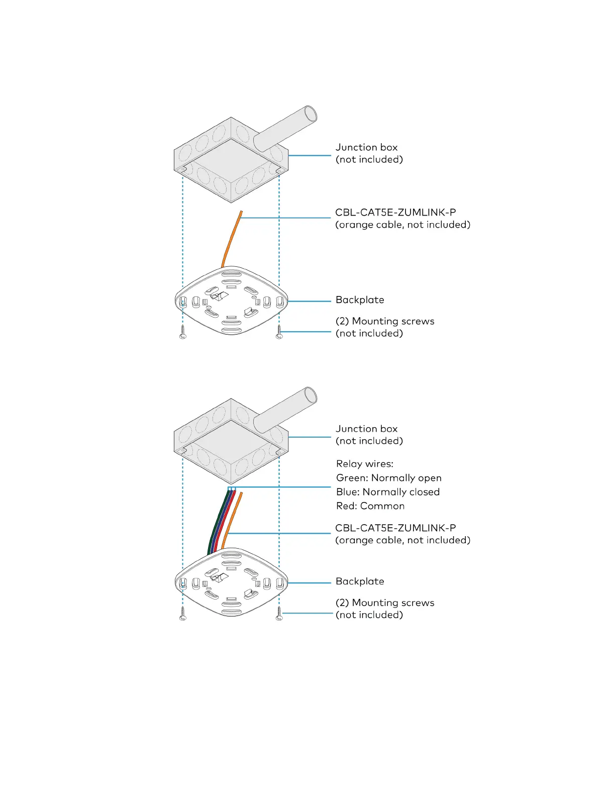 4. Feed the CBL-CAT5E-ZUMLINK-P cable through the junction box or mud ring, and connect