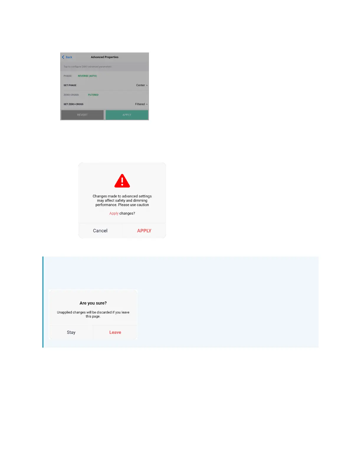 a. Select APPLY to apply the change. The dimming performance warning displays