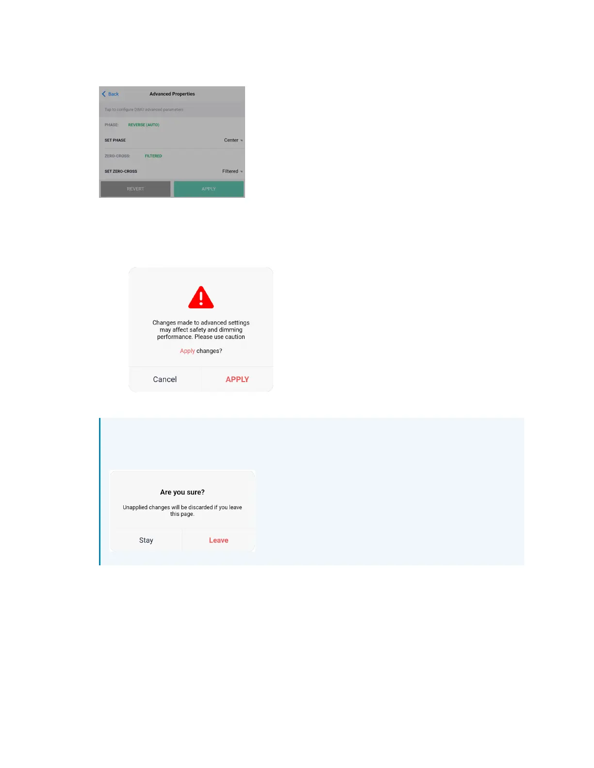 a. Select APPLY to apply the change. The dimming performance warning displays