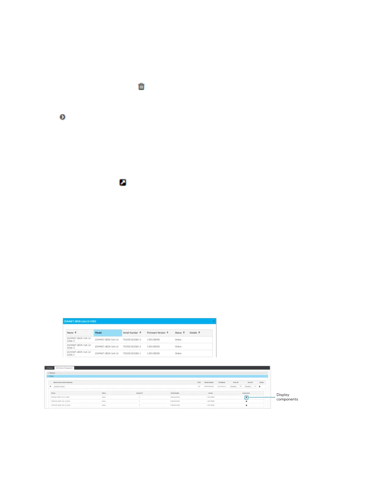 Components: Click to view the child device components. Components displays the