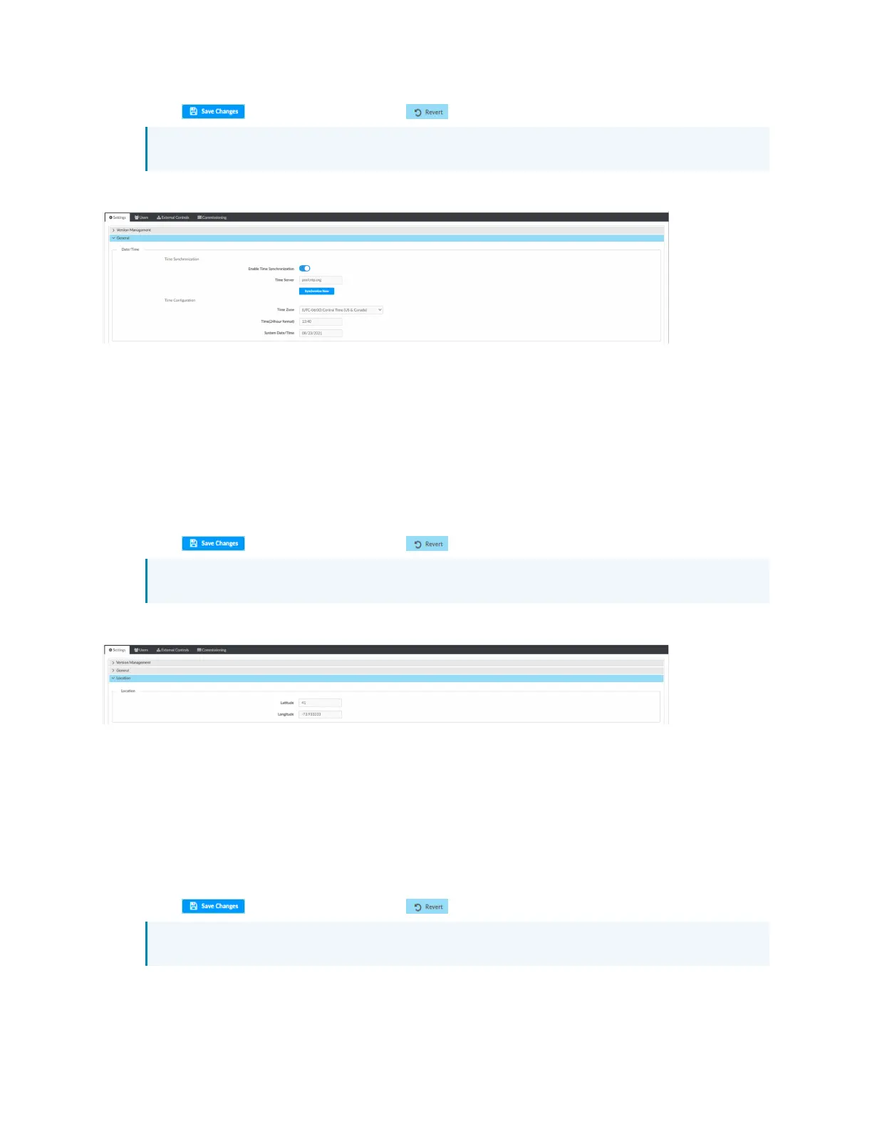 Schedule displays the correct sunrise and sunset times. To change the location: