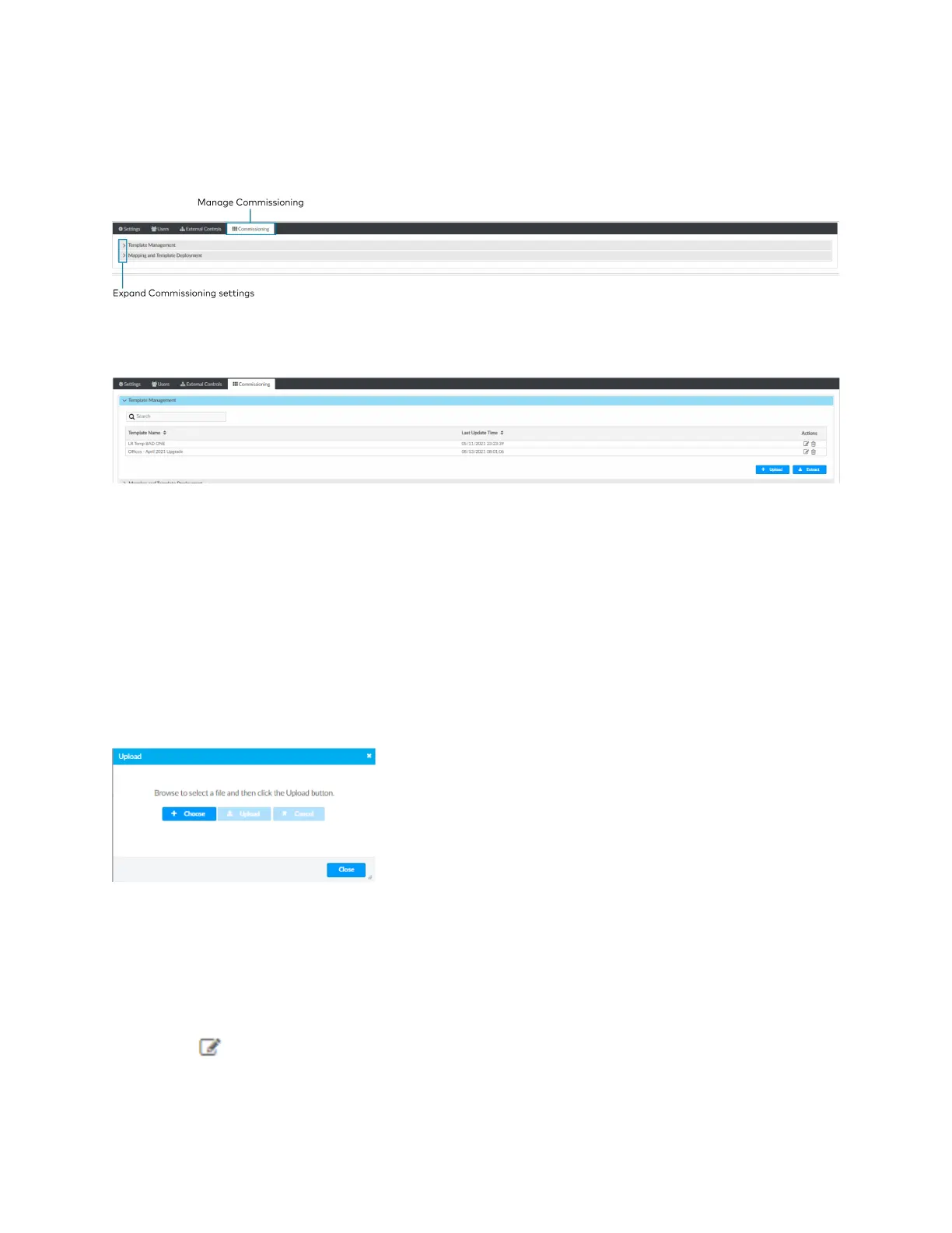 2. Click the Commissioning tab and expand the Template Management menu.