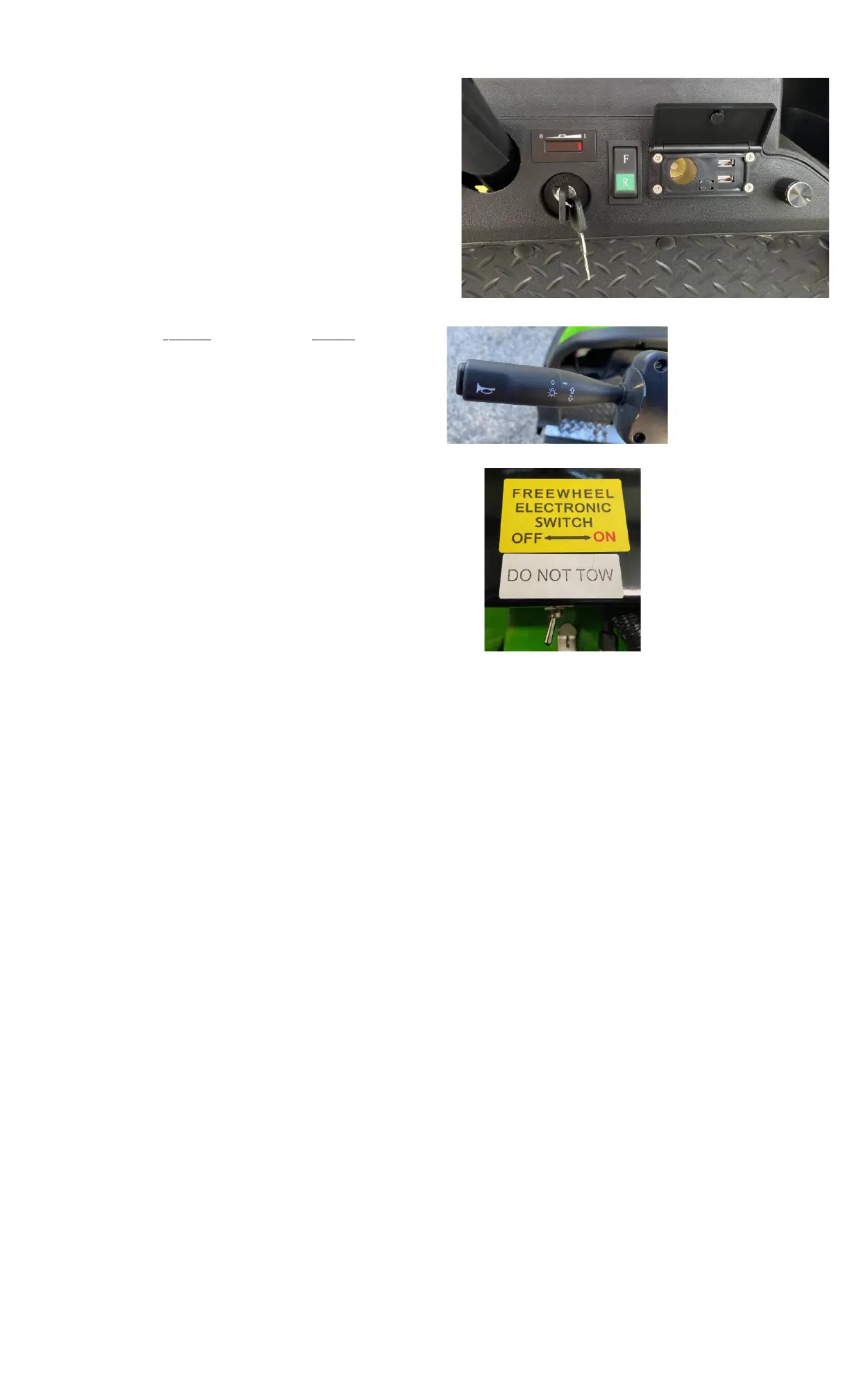 Switch the key switch to the “On” Position and select the desired direction (Forward or Reverse).