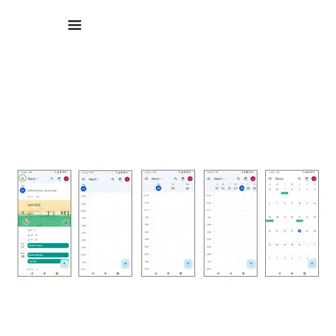 • Day: Display today’s schedule by hour. Slide the screen to the left and