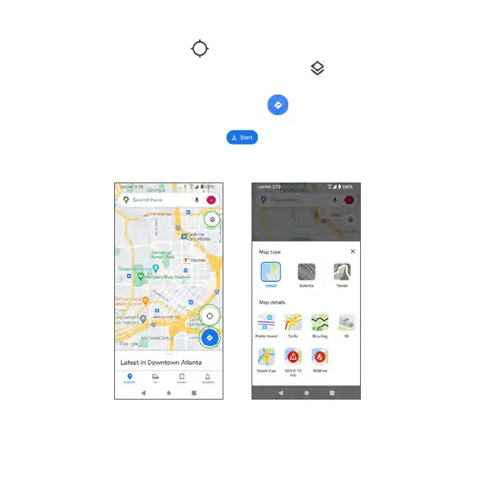 • Select map types for different views: Tap Menu and select a map view